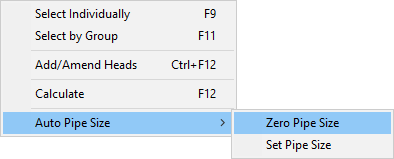 There is also an option on the calculate menu which will allow you to remove all pipe sizes from the current project it is worth making a backup of the FHC project before you use this command as it cannot be reversed.