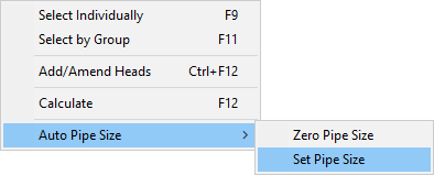 When you are happy with the source pressure and flow and the pipe sizes which have been selected you need to capture this data so the pipe sizes are permanently ‘SET’ after doing this FHC will not try to automatically size the pipes we would recommend that you do this after you have finished the pipe sizing exercise. To ensure that all the pipe sizes are captured go to the calculate menu -> auto pipe size -> set pipe sizes