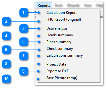 The Head Summary Report can be accessed for the menu Reports -> Pipe summary
