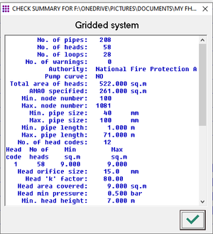 The is a summary of the FHC project and will provide you with various information such as the number of pipes, heads and loops in your FHC project. It will also display any warnings with a short message.