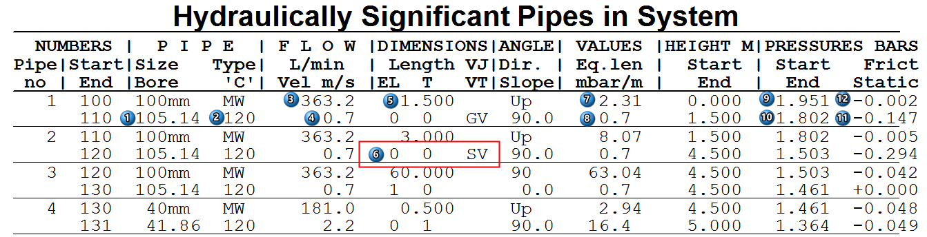 Some other information which we have numbered will influence the hydraulic calculation and should be selected carefully.