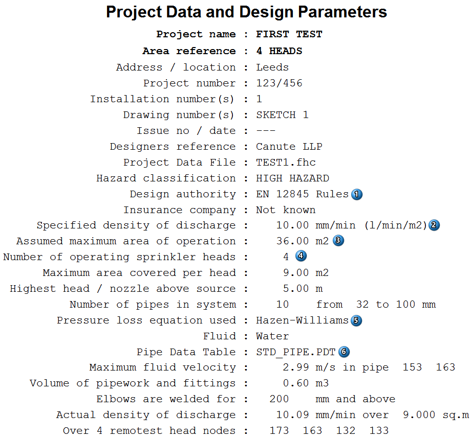 The project data and design parameters is the first page of the report provides a summary of the calculation. Most of this information is for reference and does not influence the calculation such as the project name, drawing numbers and designers reference to take a few examples