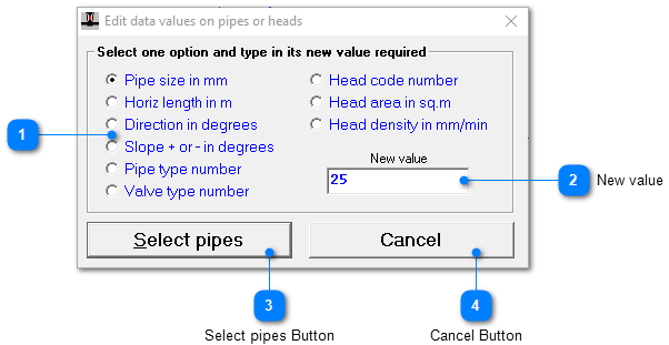 With the interactive edit tool you can change a number of different pipe attributes by selecting the attribute given it a new value and then selection individual pipes.