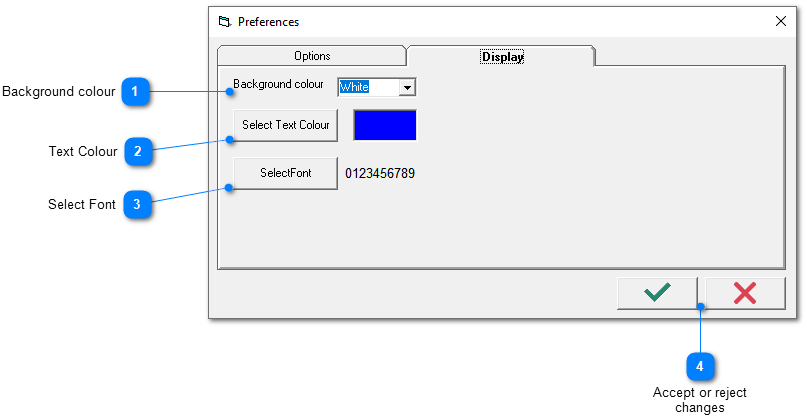 The Preferences -> Display tab allows you to set the background colour in the FHC drawing area, the colour of the text font and size to meet with your own requirements.