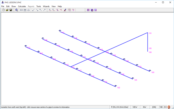 In lesson 3 We will learn how to start a new FHC project at some pipes and then copy the array to create a simple system. The use of the copy and copy rotate command greatly speeds up the data entry enable you to build complex systems very quickly.